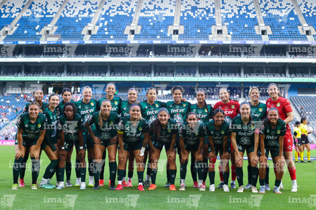 Guadalupe, Nuevo León, 19 de octubre de 2025. Foto de equipo de León, durante el partido correspondiente a la jornada 16 del torneo Apertura 2025 de la Liga BBVA MX Femenil, entre las Rayadas del Monterrey y las Esmeraldas del León, realizado en el estadio BBVA. Foto: Imago7/