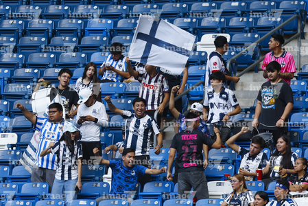 Guadalupe, Nuevo León, 19 de octubre de 2025. Afición, durante el partido correspondiente a la jornada 16 del torneo Apertura 2025 de la Liga BBVA MX Femenil, entre las Rayadas del Monterrey y las Esmeraldas del León, realizado en el estadio BBVA. Foto: Imago7/