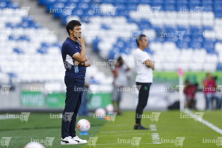 Guadalupe, Nuevo León, 19 de octubre de 2025. Alejandro Corona, director técnico, durante el partido correspondiente a la jornada 16 del torneo Apertura 2025 de la Liga BBVA MX Femenil, entre las Rayadas del Monterrey y las Esmeraldas del León, realizado en el estadio BBVA. Foto: Imago7/
