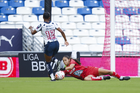 Guadalupe, Nuevo León, 19 de octubre de 2025. Alexia Villanueva y Alice Soto, durante el partido correspondiente a la jornada 16 del torneo Apertura 2025 de la Liga BBVA MX Femenil, entre las Rayadas del Monterrey y las Esmeraldas del León, realizado en el estadio BBVA. Foto: Imago7/