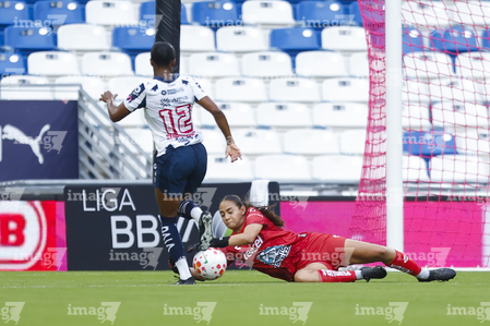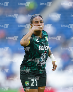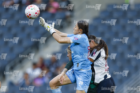 Guadalupe, Nuevo León, 19 de octubre de 2025. , durante el partido correspondiente a la jornada 16 del torneo Apertura 2025 de la Liga BBVA MX Femenil, entre las Rayadas del Monterrey y las Esmeraldas del León, realizado en el estadio BBVA. Foto: Imago7/