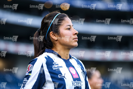 Guadalupe, Nuevo León, 19 de octubre de 2025. Andrea Sánchez, durante el partido correspondiente a la jornada 16 del torneo Apertura 2025 de la Liga BBVA MX Femenil, entre las Rayadas del Monterrey y las Esmeraldas del León, realizado en el estadio BBVA. Foto: Imago7/ Nora Guerero