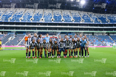Guadalupe, Nuevo León, 19 de octubre de 2025. Foto de equipo de Rayadas, durante el partido correspondiente a la jornada 16 del torneo Apertura 2025 de la Liga BBVA MX Femenil, entre las Rayadas del Monterrey y las Esmeraldas del León, realizado en el estadio BBVA. Foto: Imago7/ Nora Guerero