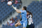 Guadalupe, Nuevo León, 19 de octubre de 2025. Christina Burkenroad, durante el partido correspondiente a la jornada 16 del torneo Apertura 2025 de la Liga BBVA MX Femenil, entre las Rayadas del Monterrey y las Esmeraldas del León, realizado en el estadio BBVA. Foto: Imago7/