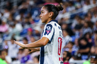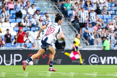 Guadalupe, Nuevo León, 19 de octubre de 2025. Alexia Villanueva, durante el partido correspondiente a la jornada 16 del torneo Apertura 2025 de la Liga BBVA MX Femenil, entre las Rayadas del Monterrey y las Esmeraldas del León, realizado en el estadio BBVA. Foto: Imago7/ Nora Guerero
