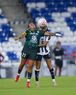 Guadalupe, Nuevo León, 19 de octubre de 2025. Alondra Camargo y Lourdes Bosch, durante el partido correspondiente a la jornada 16 del torneo Apertura 2025 de la Liga BBVA MX Femenil, entre las Rayadas del Monterrey y las Esmeraldas del León, realizado en el estadio BBVA. Foto: Imago7/