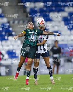 Guadalupe, Nuevo León, 19 de octubre de 2025. Alejandra Lua, durante el partido correspondiente a la jornada 16 del torneo Apertura 2025 de la Liga BBVA MX Femenil, entre las Rayadas del Monterrey y las Esmeraldas del León, realizado en el estadio BBVA. Foto: Imago7/ Nora Guerero