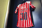 Pachuca, Hidalgo, 19 de octubre de 2025. Playera de Isabela Esquivias, durante el partido correspondiente a la jornada 16 del torneo Apertura 2025 de la Liga BBVA MX Femenil, entre las Tuzas del Pachuca y las Chivas Rayadas del Guadalajara, realizado en el estadio Hidalgo. Foto: Imago7/ Manlio Contreras