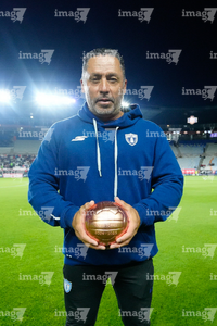 Pachuca, Hidalgo, 19 de octubre de 2025. Óscar Torres, director técnico recibió su balón de oro, durante el partido correspondiente a la jornada 16 del torneo Apertura 2025 de la Liga BBVA MX Femenil, entre las Tuzas del Pachuca y las Chivas Rayadas del Guadalajara, realizado en el estadio Hidalgo. Foto: Imago7/ Jacqueline Pedraza