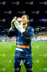 Pachuca, Hidalgo, 19 de octubre de 2025. Charlyn Corral recibió su balón de oro, durante el partido correspondiente a la jornada 16 del torneo Apertura 2025 de la Liga BBVA MX Femenil, entre las Tuzas del Pachuca y las Chivas Rayadas del Guadalajara, realizado en el estadio Hidalgo. Foto: Imago7/ Jacqueline Pedraza
