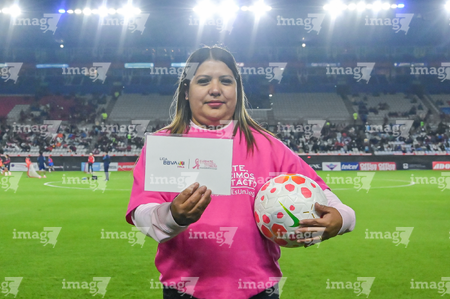 Pachuca, Hidalgo, 19 de octubre de 2025. Embajadora de la Campaña Rosa para la concientización del Cáncer de Mama, durante el partido correspondiente a la jornada 16 del torneo Apertura 2025 de la Liga BBVA MX Femenil, entre las Tuzas del Pachuca y las Chivas Rayadas del Guadalajara, realizado en el estadio Hidalgo. Foto: Imago7/ Mauricio Ruiz