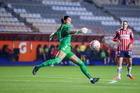 Pachuca, Hidalgo, 19 de octubre de 2025. Alexandra Godínez, durante el partido correspondiente a la jornada 16 del torneo Apertura 2025 de la Liga BBVA MX Femenil, entre las Tuzas del Pachuca y las Chivas Rayadas del Guadalajara, realizado en el estadio Hidalgo. Foto: Imago7/ Jacqueline Pedraza