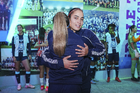 Pachuca, Hidalgo, 19 de octubre de 2025. Charlyn Corral y Esthefanny Barreras recibieron sus balones de oro, durante el partido correspondiente a la jornada 16 del torneo Apertura 2025 de la Liga BBVA MX Femenil, entre las Tuzas del Pachuca y las Chivas Rayadas del Guadalajara, realizado en el estadio Hidalgo. Foto: Imago7/ Jacqueline Pedraza