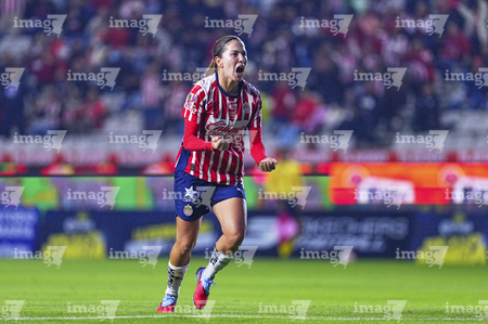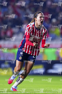 Pachuca, Hidalgo, 19 de octubre de 2025. Alicia Cervantes en festejo de gol, durante el partido correspondiente a la jornada 16 del torneo Apertura 2025 de la Liga BBVA MX Femenil, entre las Tuzas del Pachuca y las Chivas Rayadas del Guadalajara, realizado en el estadio Hidalgo. Foto: Imago7/ Manlio Contreras