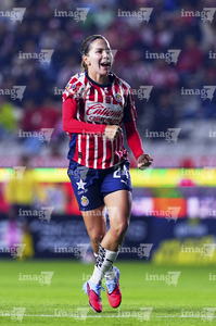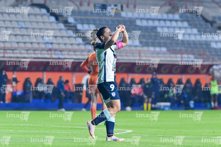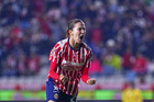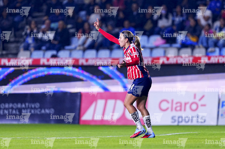 Pachuca, Hidalgo, 19 de octubre de 2025. Charlyn Corral en festejo de gol, durante el partido correspondiente a la jornada 16 del torneo Apertura 2025 de la Liga BBVA MX Femenil, entre las Tuzas del Pachuca y las Chivas Rayadas del Guadalajara, realizado en el estadio Hidalgo. Foto: Imago7/ Jacqueline Pedraza
