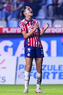 Pachuca, Hidalgo, 19 de octubre de 2025. Esthefanny Barreras en festejo, durante el partido correspondiente a la jornada 16 del torneo Apertura 2025 de la Liga BBVA MX Femenil, entre las Tuzas del Pachuca y las Chivas Rayadas del Guadalajara, realizado en el estadio Hidalgo. Foto: Imago7/ Manlio Contreras