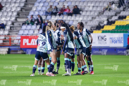 Pachuca, Hidalgo, 19 de octubre de 2025. Jugadoras de Tuzas, durante el partido correspondiente a la jornada 16 del torneo Apertura 2025 de la Liga BBVA MX Femenil, entre las Tuzas del Pachuca y las Chivas Rayadas del Guadalajara, realizado en el estadio Hidalgo. Foto: Imago7/ Elizabeth Hernández
