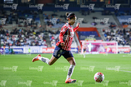 Pachuca, Hidalgo, 19 de octubre de 2025. Esthefanny Barreras, durante el partido correspondiente a la jornada 16 del torneo Apertura 2025 de la Liga BBVA MX Femenil, entre las Tuzas del Pachuca y las Chivas Rayadas del Guadalajara, realizado en el estadio Hidalgo. Foto: Imago7/ Elizabeth Hernández