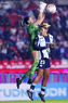 Pachuca, Hidalgo, 19 de octubre de 2025. Nina Nicosia y Myra Delgadillo, durante el partido correspondiente a la jornada 16 del torneo Apertura 2025 de la Liga BBVA MX Femenil, entre las Tuzas del Pachuca y las Chivas Rayadas del Guadalajara, realizado en el estadio Hidalgo. Foto: Imago7/ Manlio Contreras
