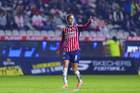 Pachuca, Hidalgo, 19 de octubre de 2025. Celeste Espino en festejo, durante el partido correspondiente a la jornada 16 del torneo Apertura 2025 de la Liga BBVA MX Femenil, entre las Tuzas del Pachuca y las Chivas Rayadas del Guadalajara, realizado en el estadio Hidalgo. Foto: Imago7/ Jacqueline Pedraza