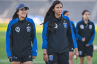 Ciudad Juárez, Chihuahua, 31 de octubre de 2025. Daniela Carrandi y Maria Perez, durante el partido correspondiente a la jornada 17 del torneo Apertura 2025 de la Liga BBVA MX Femenil, entre las Bravas de FC Juárez y el Club Querétaro, realizado en realizado en el estadio Olímpico Benito Juárez. Foto: Imago7/Alejandro Rodriguez