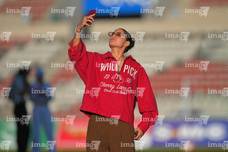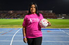 Ciudad Juárez, Chihuahua, 31 de octubre de 2025. Embajadora de la Campaña Rosa para la concientización del Cáncer de Mama, durante el partido correspondiente a la jornada 17 del torneo Apertura 2025 de la Liga BBVA MX Femenil, entre las Bravas de FC Juárez y el Club Querétaro, realizado en realizado en el estadio Olímpico Benito Juárez. Foto: Imago7/Alejandro Rodriguez