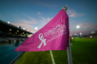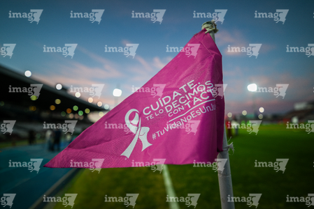 Ciudad Juárez, Chihuahua, 31 de octubre de 2025. Banderín de la Campaña Rosa para la concientización del Cáncer de Mama, durante el partido correspondiente a la jornada 17 del torneo Apertura 2025 de la Liga BBVA MX Femenil, entre las Bravas de FC Juárez y el Club Querétaro, realizado en realizado en el estadio Olímpico Benito Juárez. Foto: Imago7/ José Zamora