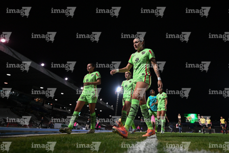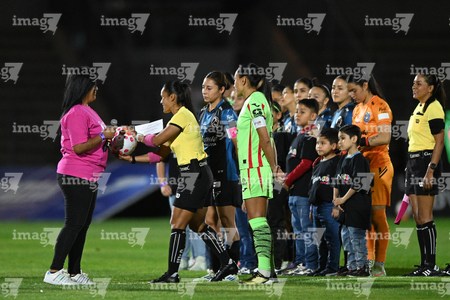 Ciudad Juárez, Chihuahua, 31 de octubre de 2025. Protocolo, durante el partido correspondiente a la jornada 17 del torneo Apertura 2025 de la Liga BBVA MX Femenil, entre las Bravas de FC Juárez y el Club Querétaro, realizado en realizado en el estadio Olímpico Benito Juárez. Foto: Imago7/Alejandro Rodriguez