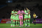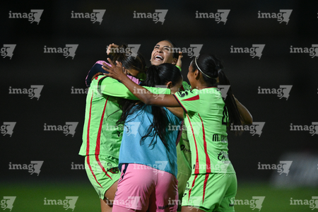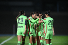 Ciudad Juárez, Chihuahua, 31 de octubre de 2025. jugadoras del Querétaro femenil, durante el partido correspondiente a la jornada 17 del torneo Apertura 2025 de la Liga BBVA MX Femenil, entre las Bravas de FC Juárez y el Club Querétaro, realizado en realizado en el estadio Olímpico Benito Juárez. Foto: Imago7/ José Zamora