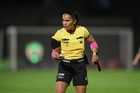 Ciudad Juárez, Chihuahua, 31 de octubre de 2025. Cesia Deysire Campos, árbitra central, durante el partido correspondiente a la jornada 17 del torneo Apertura 2025 de la Liga BBVA MX Femenil, entre las Bravas de FC Juárez y el Club Querétaro, realizado en realizado en el estadio Olímpico Benito Juárez. Foto: Imago7/ José Zamora