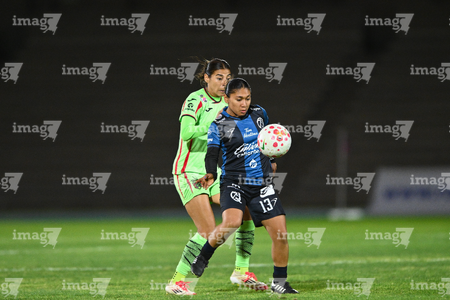 Ciudad Juárez, Chihuahua, 31 de octubre de 2025. Alexa Herrera y Marta Alemany, durante el partido correspondiente a la jornada 17 del torneo Apertura 2025 de la Liga BBVA MX Femenil, entre las Bravas de FC Juárez y el Club Querétaro, realizado en realizado en el estadio Olímpico Benito Juárez. Foto: Imago7/Alejandro Rodriguez