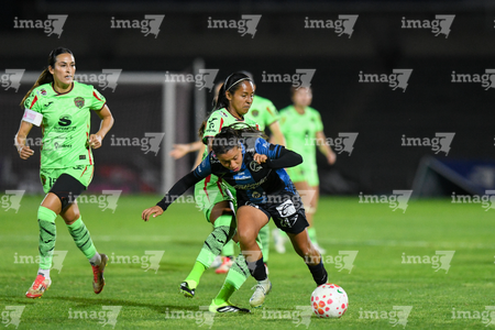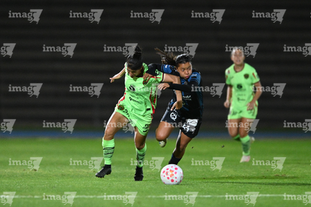 Ciudad Juárez, Chihuahua, 31 de octubre de 2025. Bianca Mora y Lady Andrade, durante el partido correspondiente a la jornada 17 del torneo Apertura 2025 de la Liga BBVA MX Femenil, entre las Bravas de FC Juárez y el Club Querétaro, realizado en realizado en el estadio Olímpico Benito Juárez. Foto: Imago7/Alejandro Rodriguez