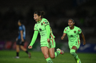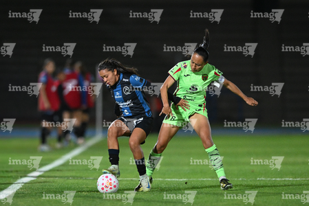 Ciudad Juárez, Chihuahua, 31 de octubre de 2025. Daniela Carrandi y Eva González, durante el partido correspondiente a la jornada 17 del torneo Apertura 2025 de la Liga BBVA MX Femenil, entre las Bravas de FC Juárez y el Club Querétaro, realizado en realizado en el estadio Olímpico Benito Juárez. Foto: Imago7/ José Zamora