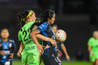 Ciudad Juárez, Chihuahua, 31 de octubre de 2025. Bianca Mora y Leidy Ramos, durante el partido correspondiente a la jornada 17 del torneo Apertura 2025 de la Liga BBVA MX Femenil, entre las Bravas de FC Juárez y el Club Querétaro, realizado en realizado en el estadio Olímpico Benito Juárez. Foto: Imago7/Alejandro Rodriguez