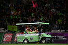 Ciudad Juárez, Chihuahua, 31 de octubre de 2025. Liliana Mercado resultó lesionada, durante el partido correspondiente a la jornada 17 del torneo Apertura 2025 de la Liga BBVA MX Femenil, entre las Bravas de FC Juárez y el Club Querétaro, realizado en realizado en el estadio Olímpico Benito Juárez. Foto: Imago7/ José Zamora
