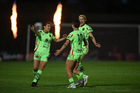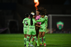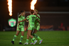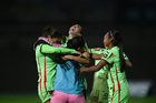 Ciudad Juárez, Chihuahua, 31 de octubre de 2025. Jugadoras de FC Juárez, durante el partido correspondiente a la jornada 17 del torneo Apertura 2025 de la Liga BBVA MX Femenil, entre las Bravas de FC Juárez y el Club Querétaro, realizado en realizado en el estadio Olímpico Benito Juárez. Foto: Imago7/ José Zamora