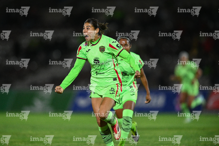 Ciudad Juárez, Chihuahua, 31 de octubre de 2025. Miah Zuazua en festejo de gol, durante el partido correspondiente a la jornada 17 del torneo Apertura 2025 de la Liga BBVA MX Femenil, entre las Bravas de FC Juárez y el Club Querétaro, realizado en realizado en el estadio Olímpico Benito Juárez. Foto: Imago7/ José Zamora