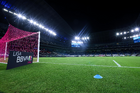 Guadalupe, Nuevo León, 31 de octubre de 2025. Panorámica del estadio, durante el partido correspondiente a la jornada 17 del torneo Apertura 2025 de la Liga BBVA MX Femenil, entre las Rayadas del Monterrey y las Rojinegras del Atlas, realizado en el estadio BBVA. Foto: Imago7/