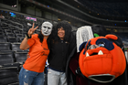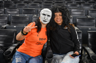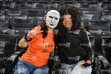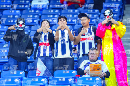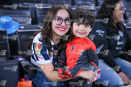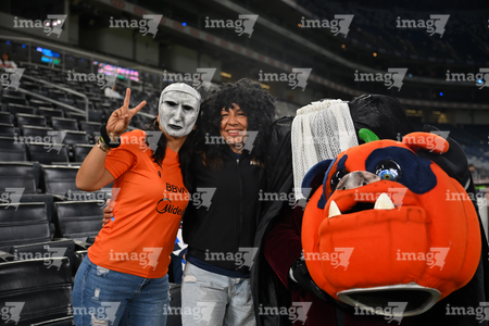 Guadalupe, Nuevo León, 31 de octubre de 2025. Afición disfrazada con motivo del Halloween, durante el partido correspondiente a la jornada 17 del torneo Apertura 2025 de la Liga BBVA MX Femenil, entre las Rayadas del Monterrey y las Rojinegras del Atlas, realizado en el estadio BBVA. Foto: Imago7/David Arzamendi