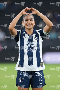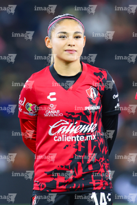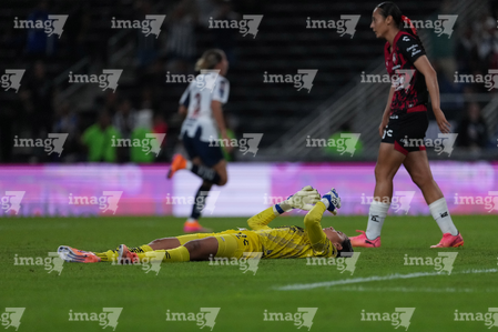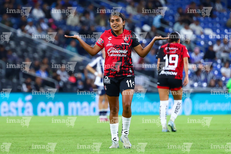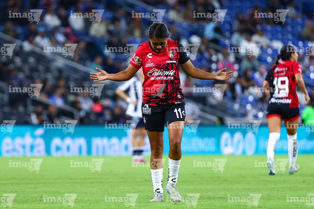 Guadalupe, Nuevo León, 31 de octubre de 2025. Portigoles, durante el partido correspondiente a la jornada 17 del torneo Apertura 2025 de la Liga BBVA MX Femenil, entre las Rayadas del Monterrey y las Rojinegras del Atlas, realizado en el estadio BBVA. Foto: Imago7/