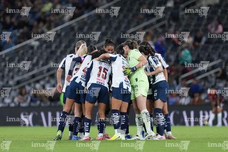 Guadalupe, Nuevo León, 31 de octubre de 2025. Foto de equipo de Rayadas, durante el partido correspondiente a la jornada 17 del torneo Apertura 2025 de la Liga BBVA MX Femenil, entre las Rayadas del Monterrey y las Rojinegras del Atlas, realizado en el estadio BBVA. Foto: Imago7/ Andrea Jiménez
