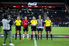 Guadalupe, Nuevo León, 31 de octubre de 2025. Protocolo, durante el partido correspondiente a la jornada 17 del torneo Apertura 2025 de la Liga BBVA MX Femenil, entre las Rayadas del Monterrey y las Rojinegras del Atlas, realizado en el estadio BBVA. Foto: Imago7/Nora Guerrero
