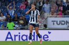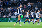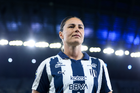 Guadalupe, Nuevo León, 31 de octubre de 2025. Emily Gielnik, durante el partido correspondiente a la jornada 17 del torneo Apertura 2025 de la Liga BBVA MX Femenil, entre las Rayadas del Monterrey y las Rojinegras del Atlas, realizado en el estadio BBVA. Foto: Imago7/Nora Guerrero