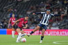 Guadalupe, Nuevo León, 31 de octubre de 2025. Nicole Pérez, durante el partido correspondiente a la jornada 17 del torneo Apertura 2025 de la Liga BBVA MX Femenil, entre las Rayadas del Monterrey y las Rojinegras del Atlas, realizado en el estadio BBVA. Foto: Imago7/Nora Guerrero