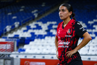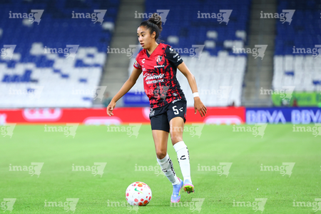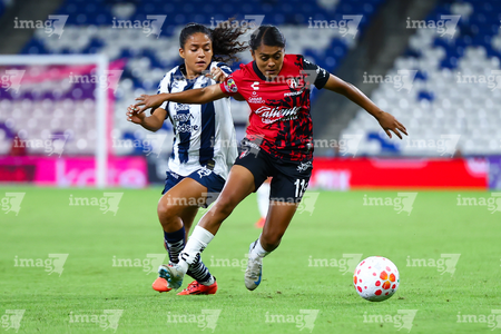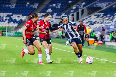 Guadalupe, Nuevo León, 31 de octubre de 2025. Zellyka Arce (I), durante el partido correspondiente a la jornada 17 del torneo Apertura 2025 de la Liga BBVA MX Femenil, entre las Rayadas del Monterrey y las Rojinegras del Atlas, realizado en el estadio BBVA. Foto: Imago7/ Andrea Jiménez