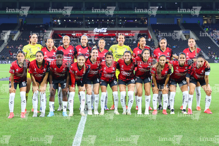 Guadalupe, Nuevo León, 31 de octubre de 2025. Foto de equipo del Atlas, durante el partido correspondiente a la jornada 17 del torneo Apertura 2025 de la Liga BBVA MX Femenil, entre las Rayadas del Monterrey y las Rojinegras del Atlas, realizado en el estadio BBVA. Foto: Imago7/David Arzamendi