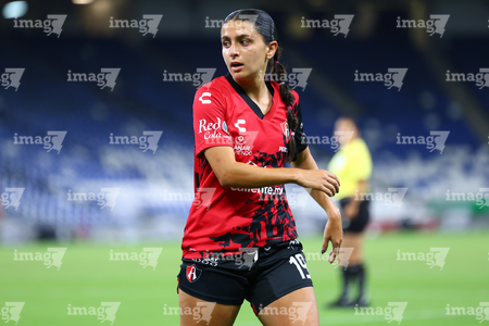 Guadalupe, Nuevo León, 31 de octubre de 2025. Alondra Cardona, durante el partido correspondiente a la jornada 17 del torneo Apertura 2025 de la Liga BBVA MX Femenil, entre las Rayadas del Monterrey y las Rojinegras del Atlas, realizado en el estadio BBVA. Foto: Imago7/Nora Guerrero