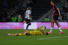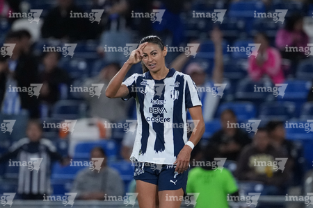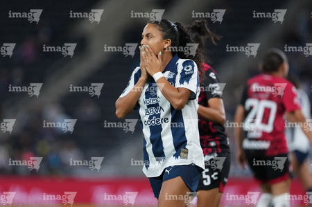 Guadalupe, Nuevo León, 31 de octubre de 2025. Camila Vázquez en lamento, durante el partido correspondiente a la jornada 17 del torneo Apertura 2025 de la Liga BBVA MX Femenil, entre las Rayadas del Monterrey y las Rojinegras del Atlas, realizado en el estadio BBVA. Foto: Imago7/ Andrea Jiménez