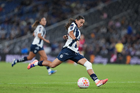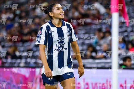 Guadalupe, Nuevo León, 31 de octubre de 2025. Nicole Pérez, durante el partido correspondiente a la jornada 17 del torneo Apertura 2025 de la Liga BBVA MX Femenil, entre las Rayadas del Monterrey y las Rojinegras del Atlas, realizado en el estadio BBVA. Foto: Imago7/ Andrea Jiménez