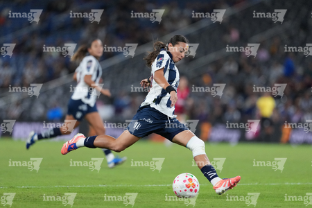 Guadalupe, Nuevo León, 31 de octubre de 2025. Kayla Fernández, durante el partido correspondiente a la jornada 17 del torneo Apertura 2025 de la Liga BBVA MX Femenil, entre las Rayadas del Monterrey y las Rojinegras del Atlas, realizado en el estadio BBVA. Foto: Imago7/David Arzamendi